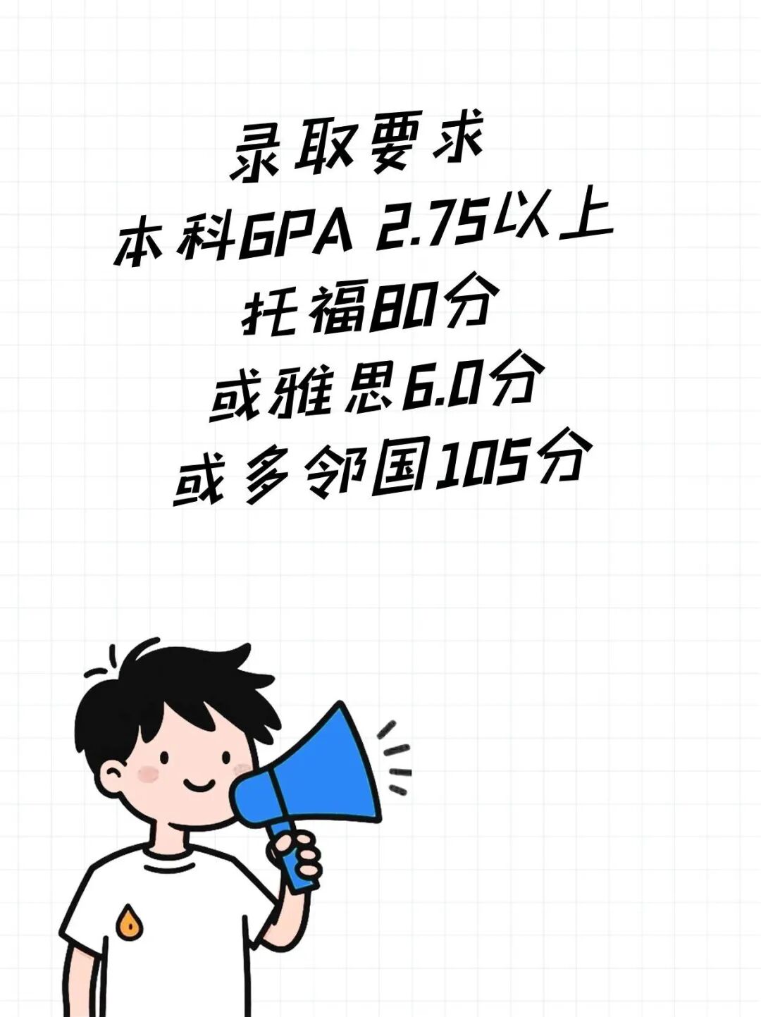录取要求:本科学士学位。英语标准化考试成绩要求:托福79分,雅思6.5分,多邻国90分。