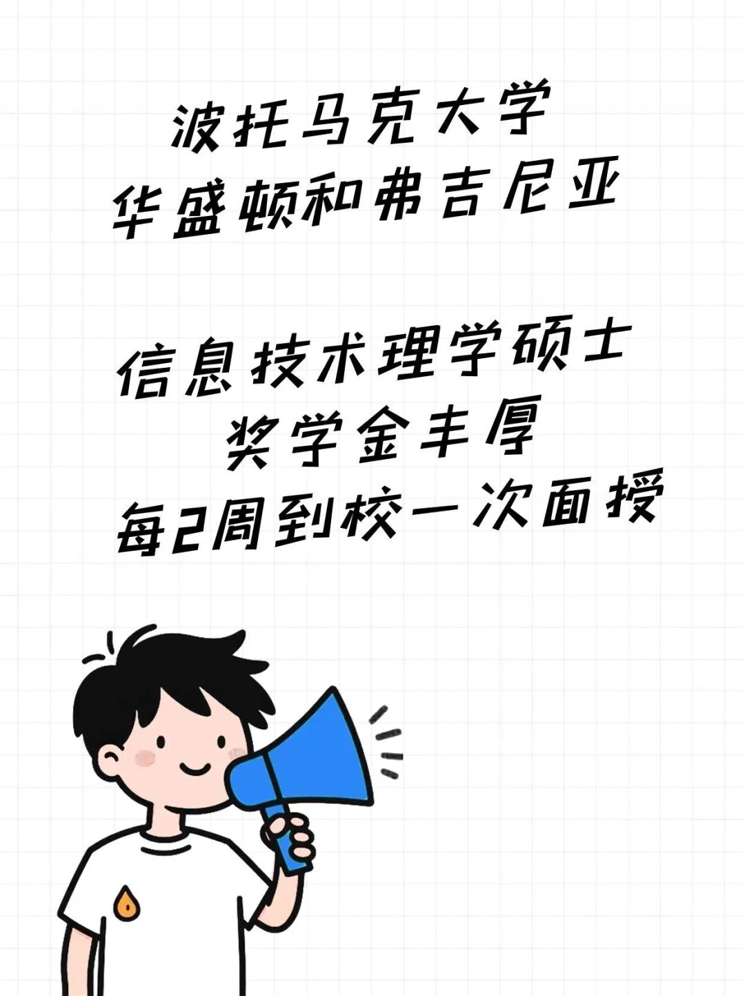 波托马克大学开设DAY 1 CPT信息技术理学硕士,共36学分,2年内可以完成,学费共约3.4万美元。如果学生保持GPA 3.0以上,可获得奖学金,实际学费共约2.2万美元。信息技术理学硕士每年6次入学,线上授课为录播课,听课时间灵活,每2周到校一次参加面授。入学第一天就可以使用CPT在美国合法工作,CPT每周最多40小时,雇主必须在学生家庭住址70英里范围内。每年更新CPT,需要维持GPA 3.0。