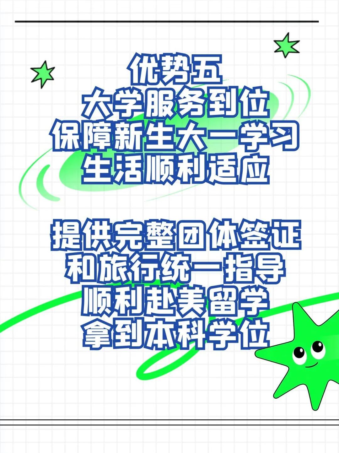 第五,大学辅导员服务到位:保障新生大一学习生活顺利适应,在新生启航年FLY项目结束时,提供完整团体签证和旅行统一指导,顺利赴美留学纽约石溪大学,拿到美国本科学位。