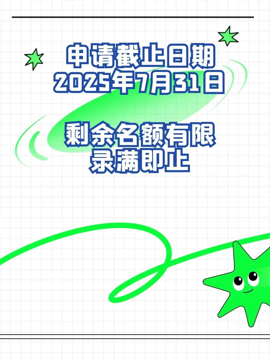 申请截止日期为2025年7月31日,剩余名额有限,录满即止。