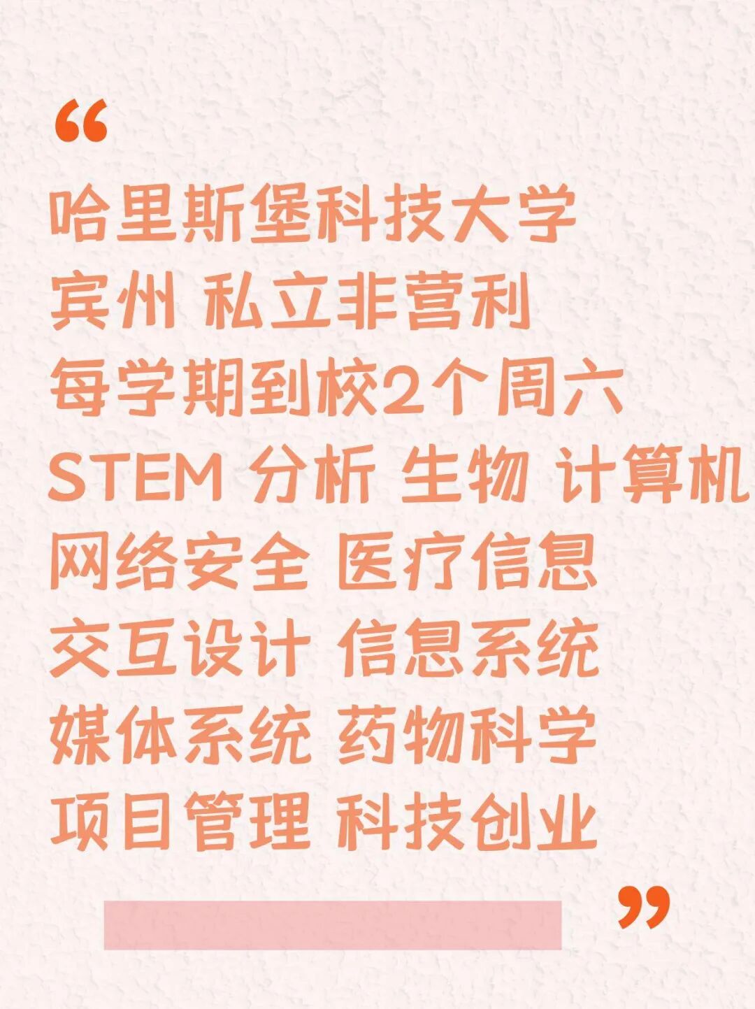 哈里斯堡科技大学(Harrisburg University of Science & Technology),创立于2001年,位于宾夕法尼亚州哈里斯堡,是一所私立非营利性大学。开设11个DAY 1 CPT STEM硕士课程,根据美国Corporate Livewire的STEM专业排名,2021-2023年连续排名第一。每学期2个周六到校参加面授,其余课程线上完成,适合学生异地灵活工作。