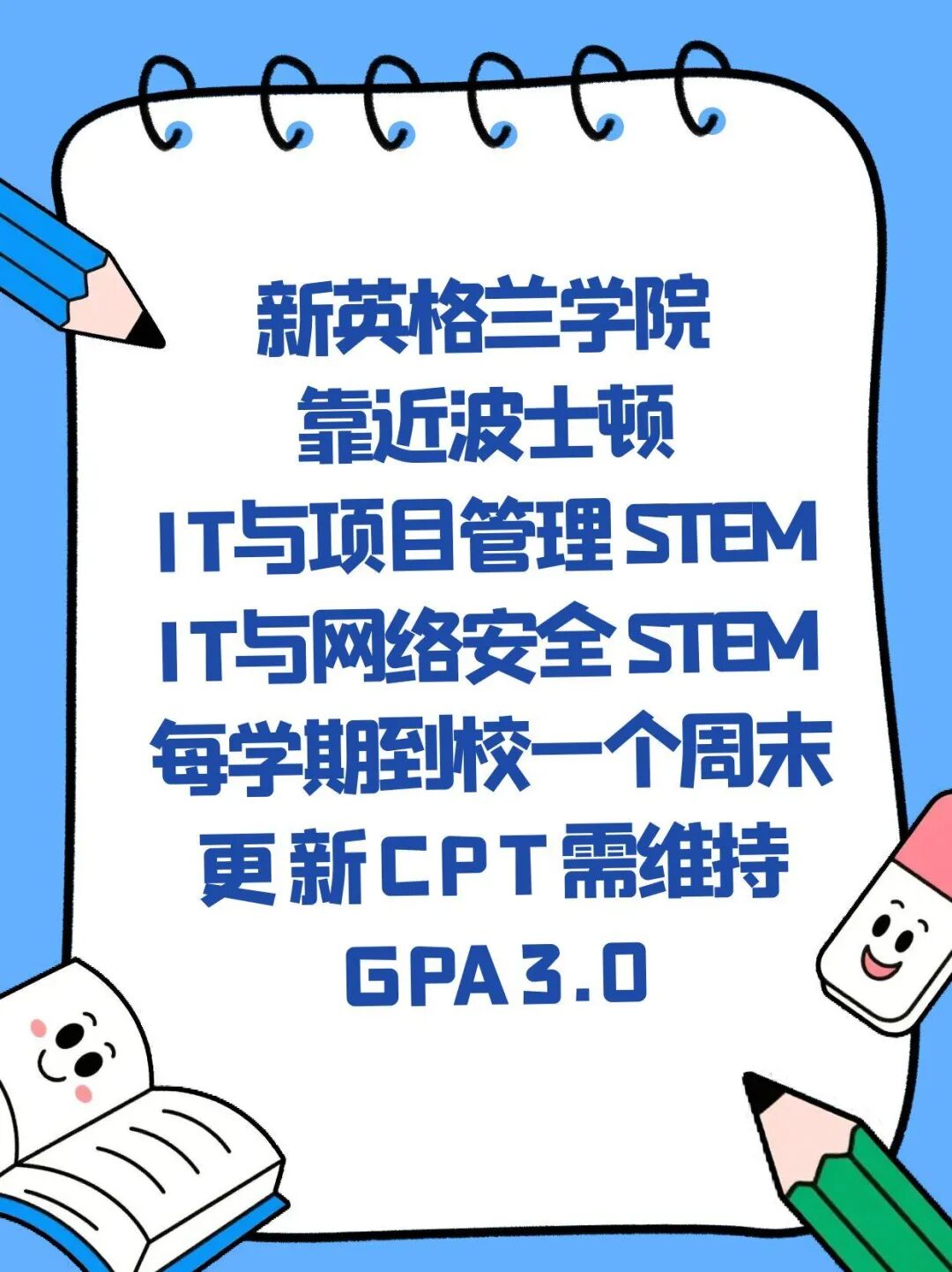 IT与项目管理硕士为STEM领域,共40个学分,2年完成,学费共约1.9万美元。IT与网络安全硕士为STEM领域,共36个学分,2年内完成,学费共约1.7万美元。以上2个硕士课程每学期到校面授一个周末,其余时间线上完成。每个学期更新CPT,需要维持GPA 3.0。