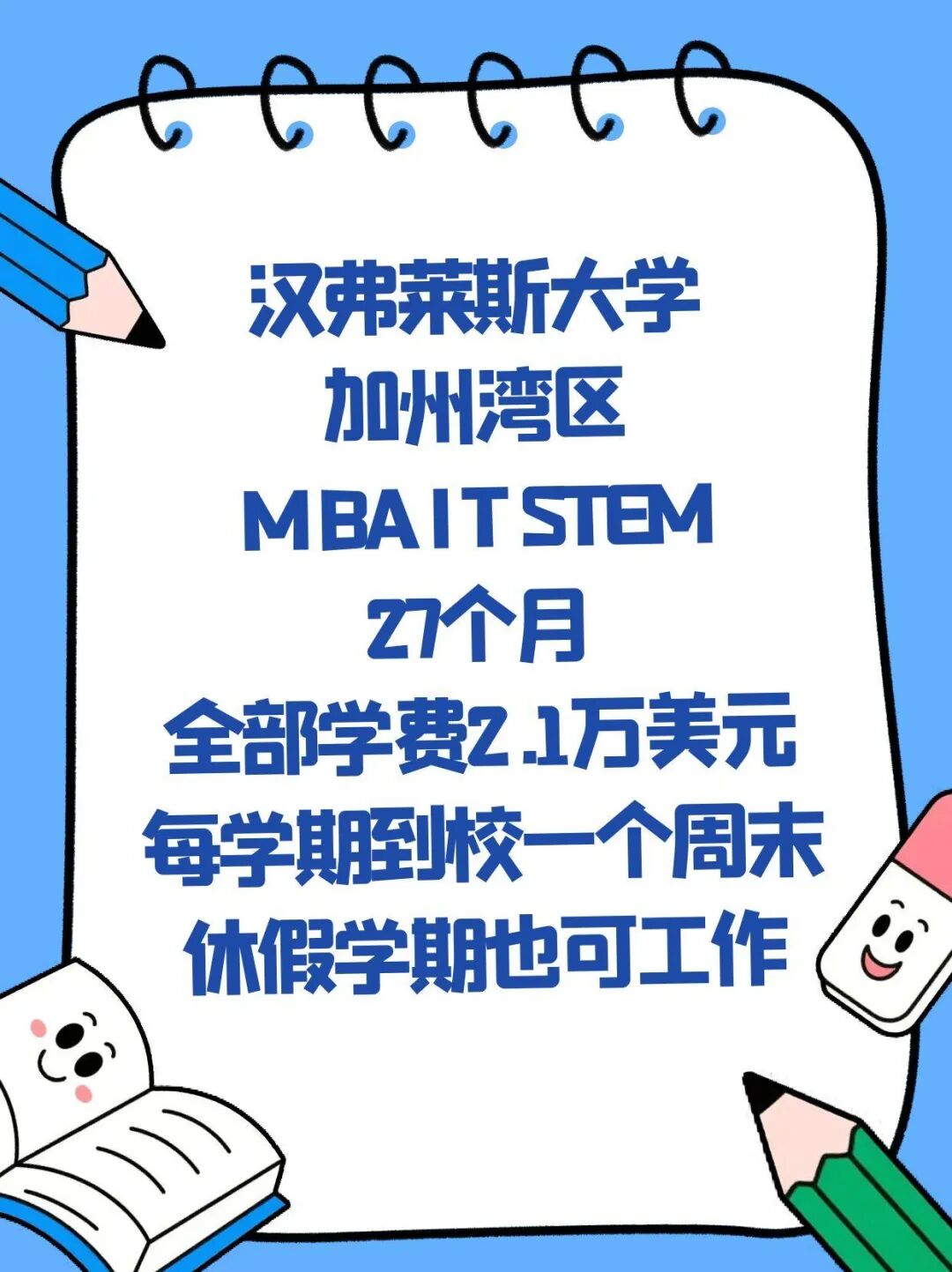 工商管理硕士MBA的IT方向为STEM领域,共52个学分,为期27个月,每学期学费为3500美元,全部学费为2.1万美元。每学期到校面授一个周末(周六和周日),其余时间线上完成。每2个学期之间有2周的休息时间,每完成3个学期,可以休假1个学期,休假的学期也可以使用CPT合法工作。