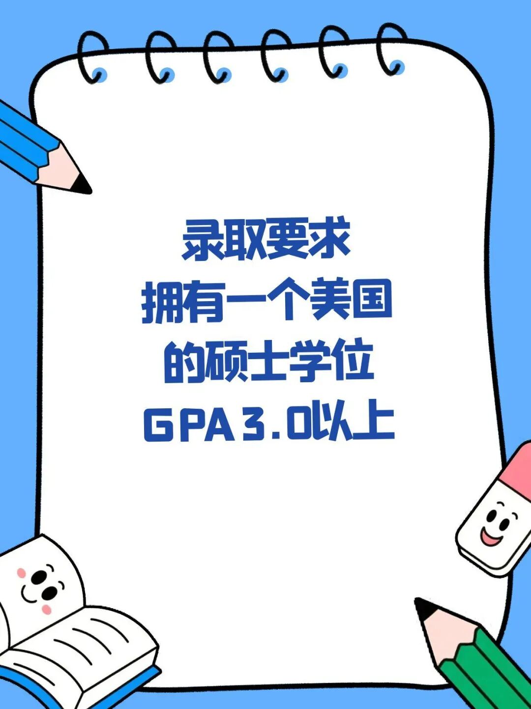 录取要求:拥有一个美国的硕士学位,GPA 3.0以上。