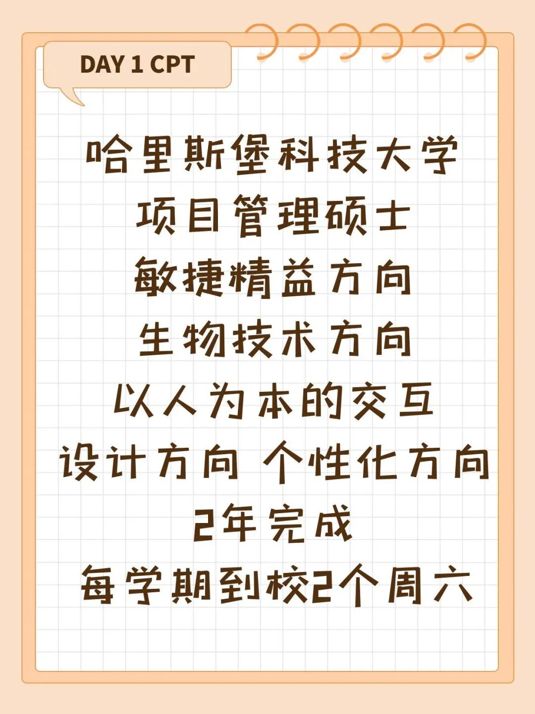 三,哈里斯堡科技大学(Harrisburg University of Science and Technology),非营利,校区位于宾夕法尼亚州哈里斯堡,开设项目管理硕士,有敏捷精益方向、生物技术方向、以人为本的交互设计方向、个性化方向,共36学分,2年完成,学费共约3.5万美元,每学期到校面授2个周六,每年更新CPT。录取要求:本科成绩单;英语标准化考试成绩要求:托福80分,或雅思6分,或多邻国105分(美国学位GPA 3.0可豁免)。